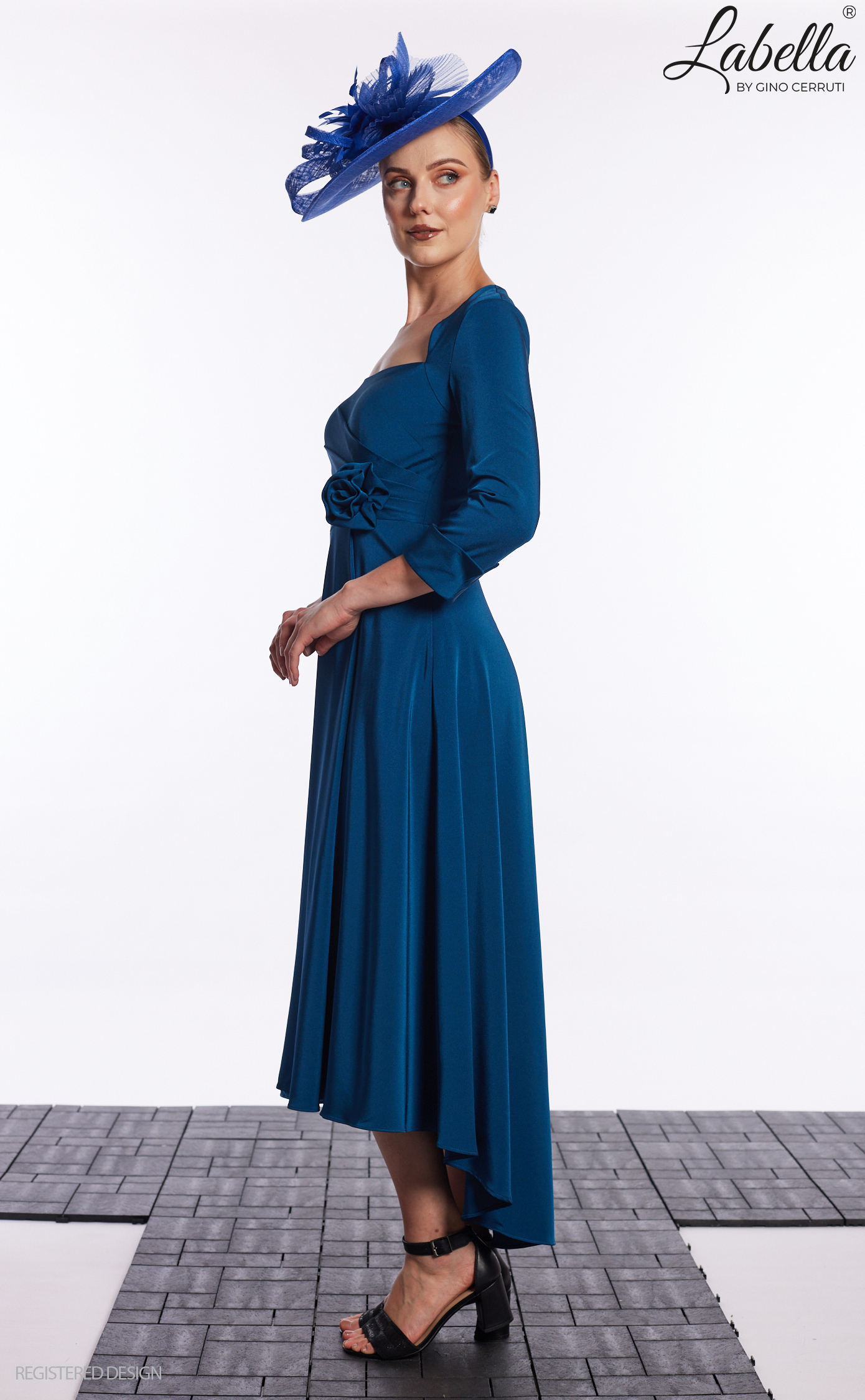 Captivate the crowd in our enchanting square neck, high-low dress. This stunning piece features a gracefully pleated A-line skirt that creates a dramatic silhouette. The eye-catching 3D rose detail at the waist adds a touch of romance, while the luxurious satin fabric ensures a smooth, elegant drape