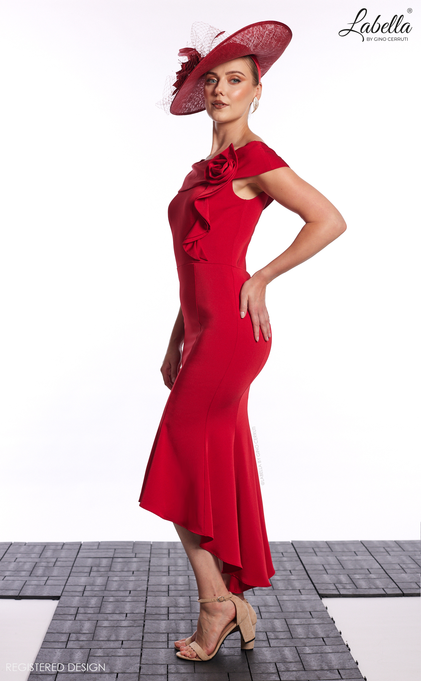 Make a bold statement in our elegant boat neck high-low fitted dress, featuring a fluted hem that adds a touch of elegance. The unique flower detail on one shoulder enhances the feminine charm of this dress, making it perfect for special occasions. The high-low design creates a dramatic silhouette, allowing you to showcase your favourite heels while maintaining an air of sophistication.